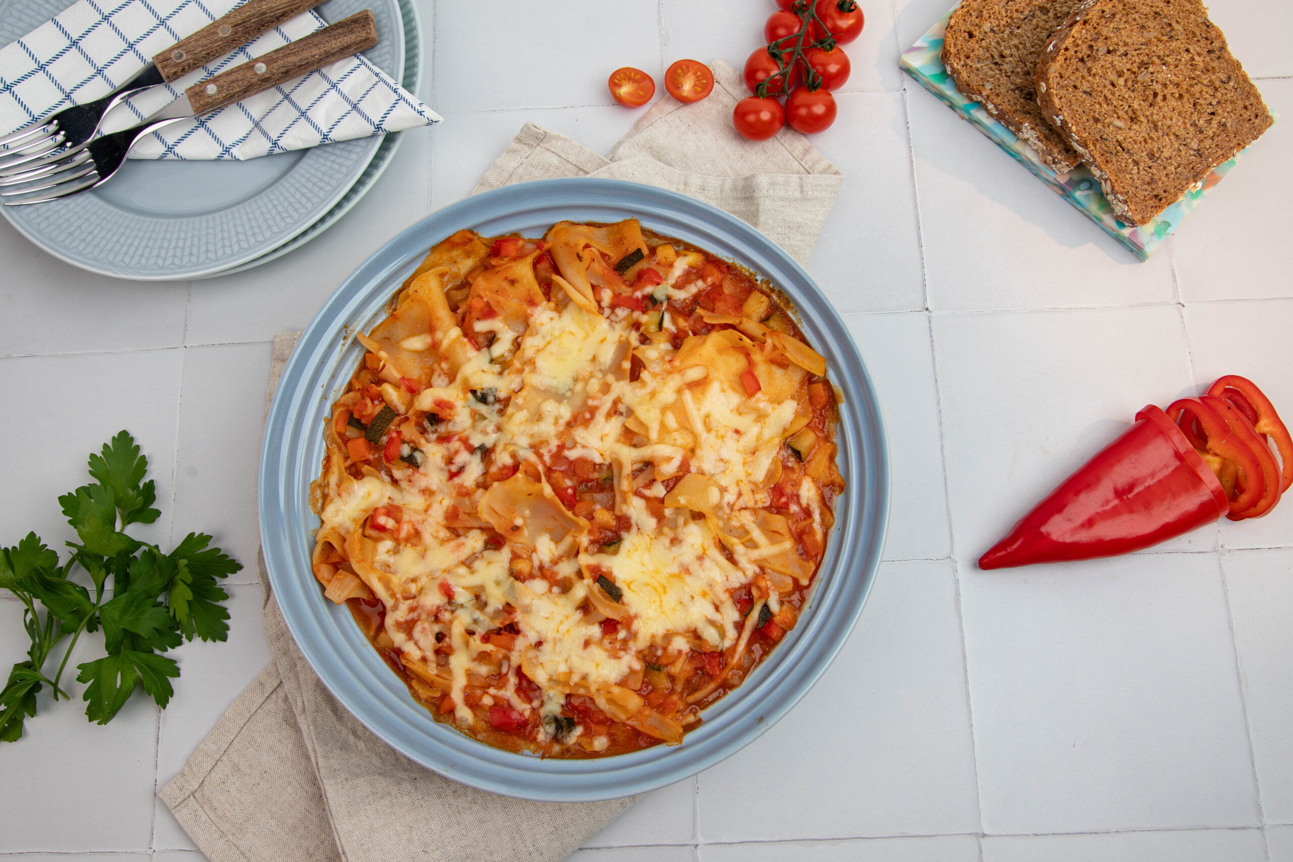 En enkel alt-i-ett-grytelasagne – proppfull av gode grønnsaker!